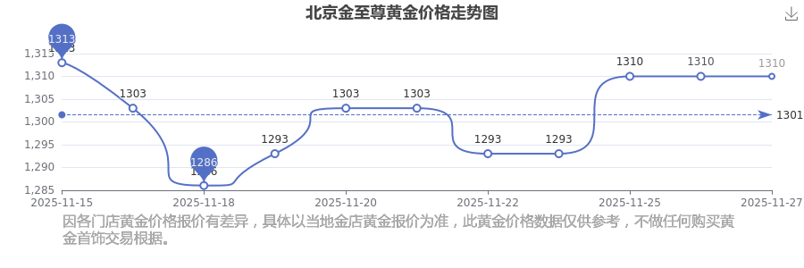 于 2025年11月27日,北京金至尊黃金價(jià)格的克價(jià)為1310.0元/克。