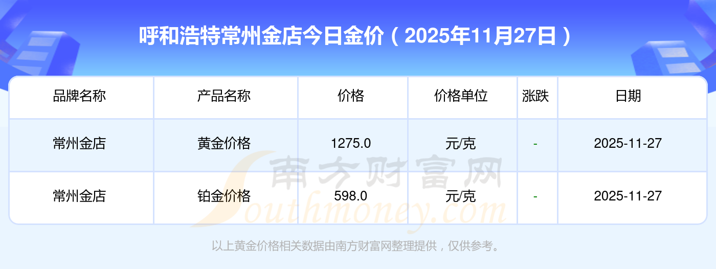 呼和浩特常州金店當下黃金一克的價錢是多少?