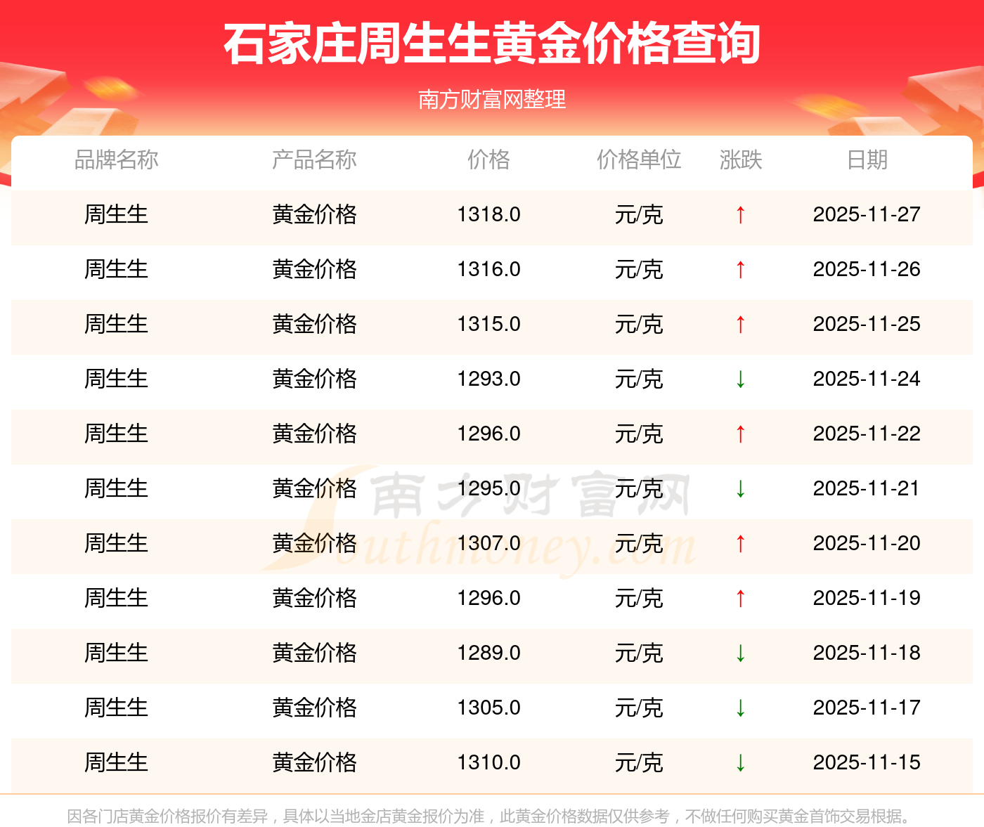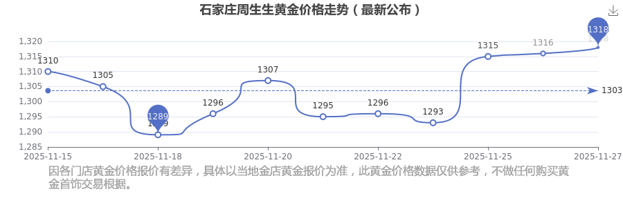 今日石家莊周生生黃金價(jià)格的價(jià)格為1318.0元/克。
