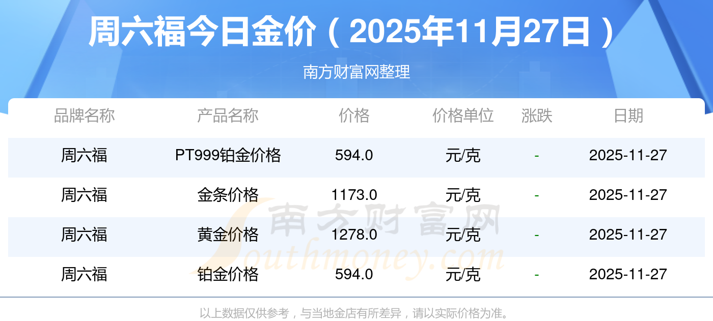 2025年11月27日周六福今日黃金價格查詢(一克金子的市場價格查詢),一起來看看吧!
