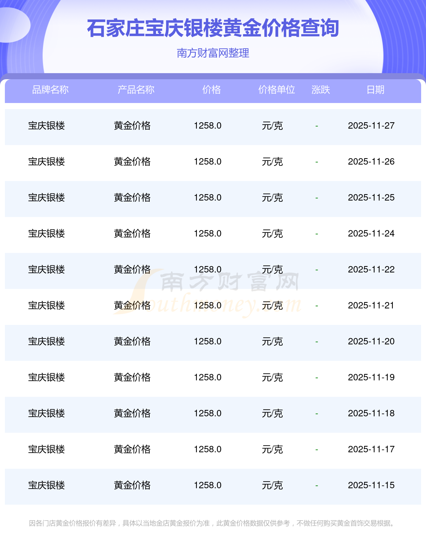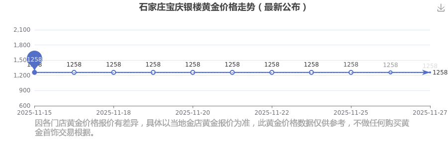 2025年11月27日這一天,石家莊寶慶銀樓的黃金價(jià)格以 1258.0元/克的價(jià)格售賣(mài)。
