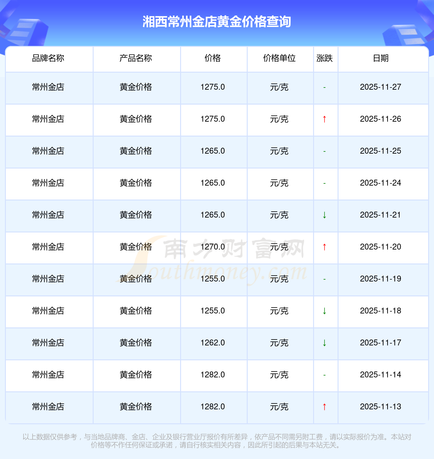 1275.0元/克,此乃湘西常州金店于 2025年11月27日黃金價(jià)格的掛牌價(jià)格。