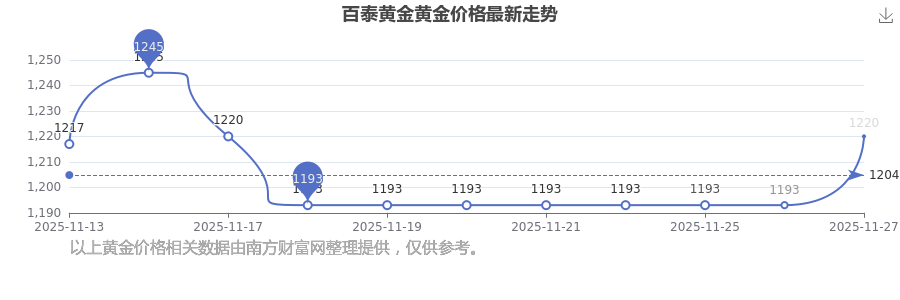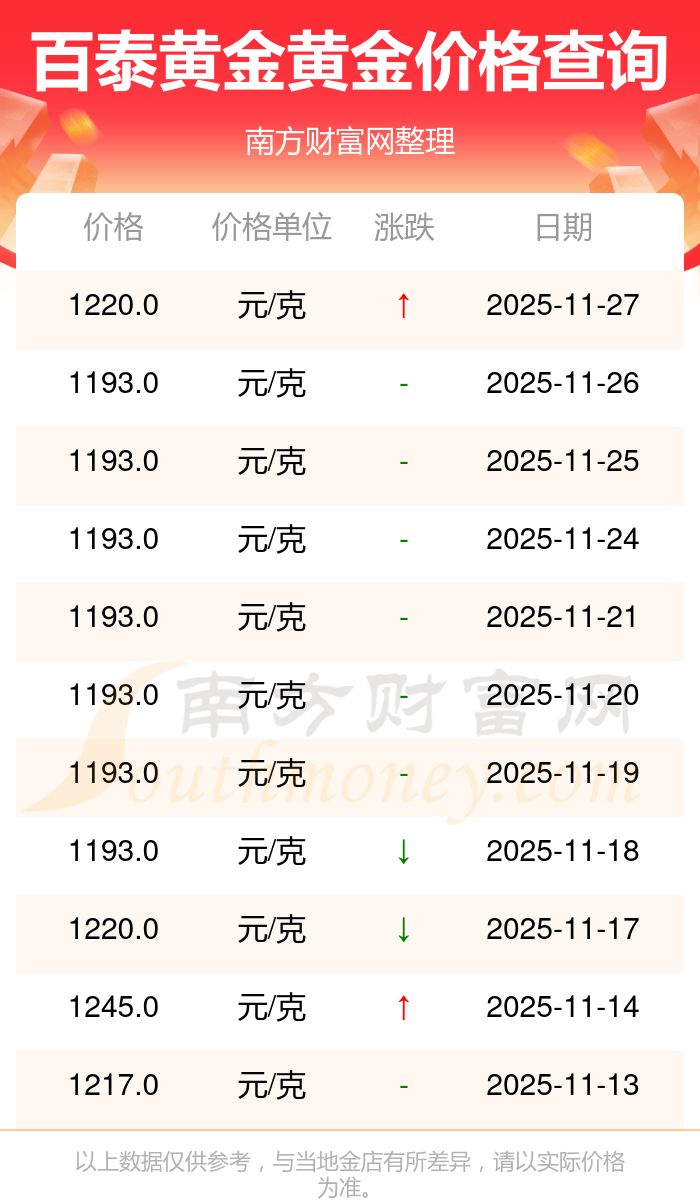 1220.0元/克的價格,是百泰黃金今日 黃金價格的最新行情。