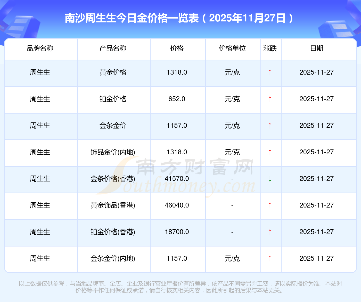 2025年11月27日南沙周生生黃金按克計(jì)價(jià),現(xiàn)在多少錢一克?黃金價(jià)格1312.0元/克,鉑金價(jià)格652.0元/克,黃金價(jià)格1316.0元/克,鉑金價(jià)格600.0元/克,黃金價(jià)格1310.0元/克,鉑金價(jià)格652.0元/克,鉑金價(jià)格(香港)18700.0,黃金價(jià)格1280.0元/克,鉑金價(jià)格540.0元/克,黃金價(jià)格1316.0元/克,鉑金價(jià)格600.0元/克。