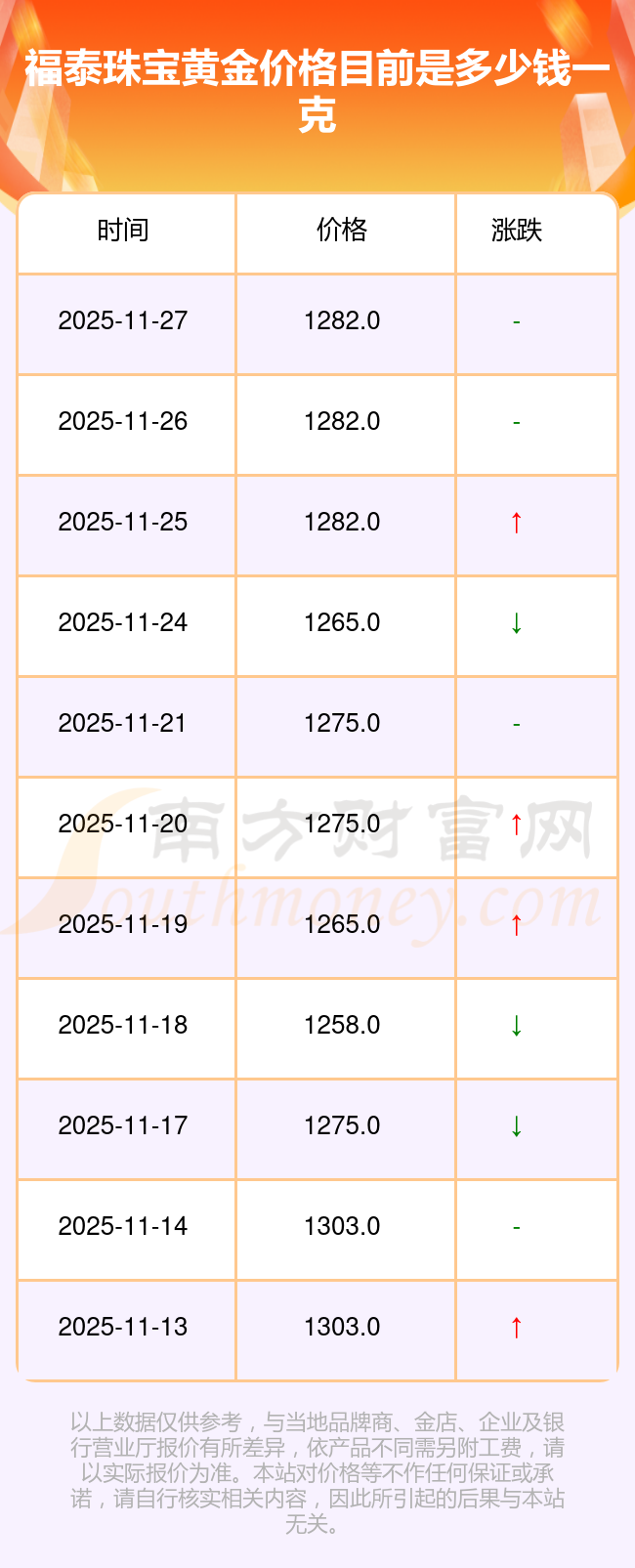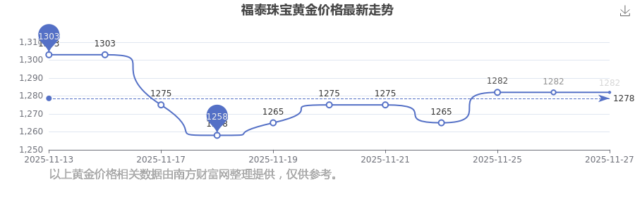 今日福泰珠寶 黃金價格的最新定價為1282.0元/克。