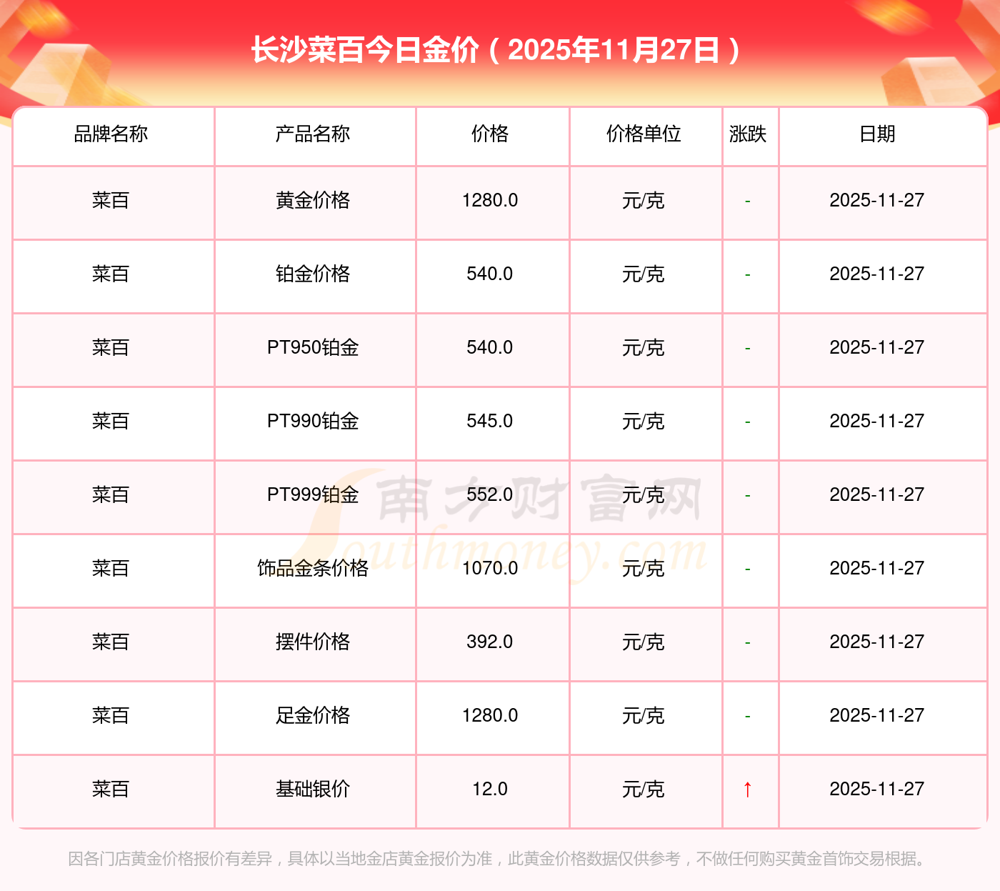 2025年11月27日菜百金條多少錢1克 現(xiàn)在長沙菜百黃金價(jià)格查詢