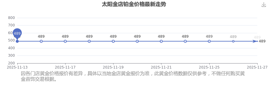 太陽金店 鉑金價格于今日的最新掛牌價為489.0元/克。