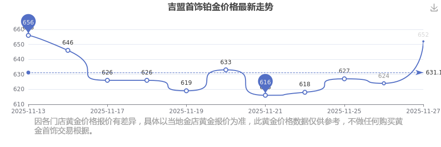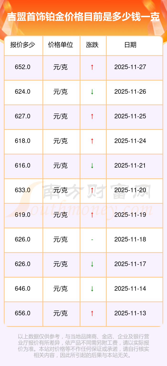 今日吉盟首飾鉑金價(jià)格的價(jià)格是652.0元/克。