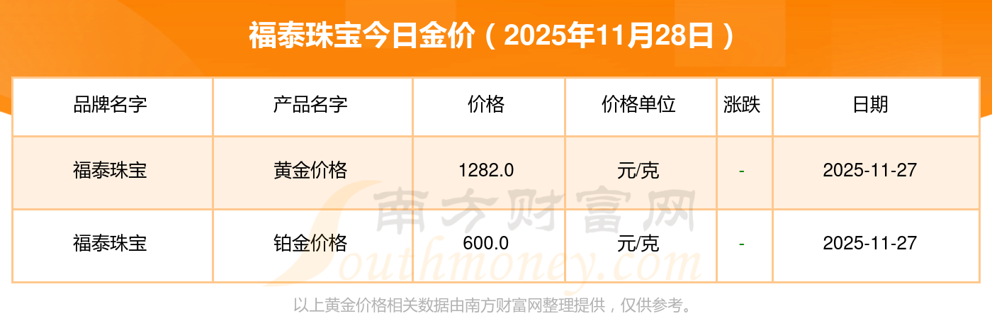 2025年11月28日福泰珠寶今日價(jià)格:黃金價(jià)格1312.0元/克,鉑金價(jià)格652.0元/克,黃金價(jià)格1316.0元/克,鉑金價(jià)格600.0元/克,黃金價(jià)格1310.0元/克,鉑金價(jià)格652.0元/克,鉑金價(jià)格(香港)18700.0,黃金價(jià)格1280.0元/克,鉑金價(jià)格540.0元/克,黃金價(jià)格1316.0元/克,鉑金價(jià)格600.0元/克。