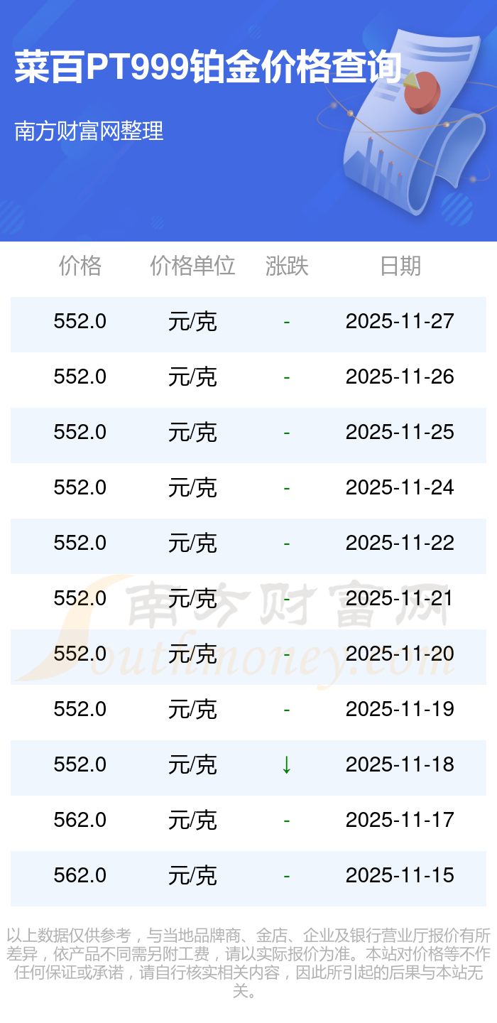 552.0元/克是菜百在今日給出的 PT999鉑金最新價格。