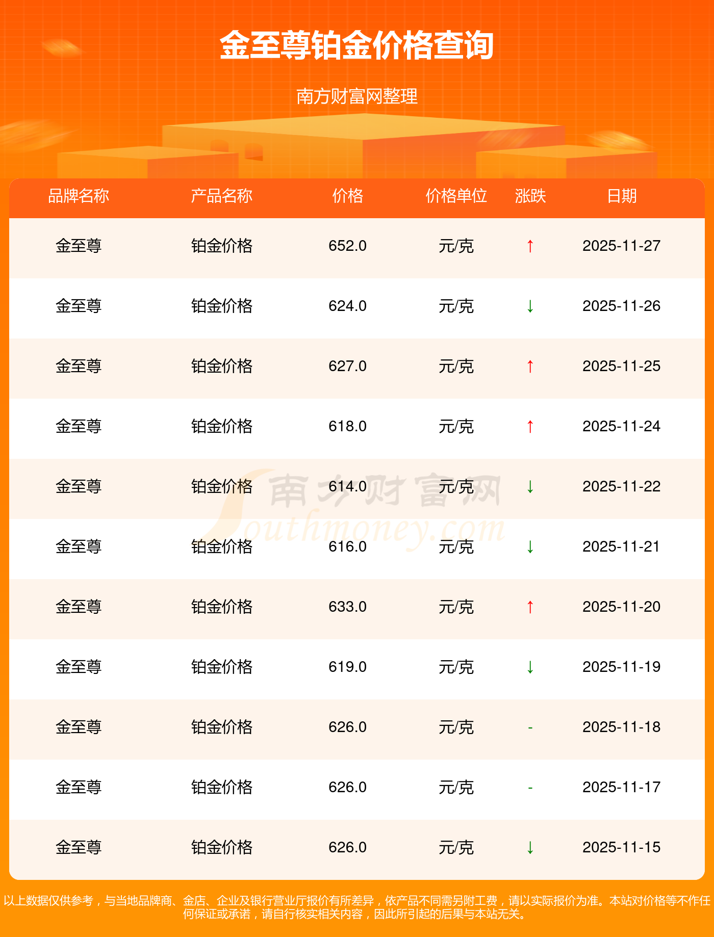 652.0元/克是金至尊在今日給出的 鉑金價格最新價格。