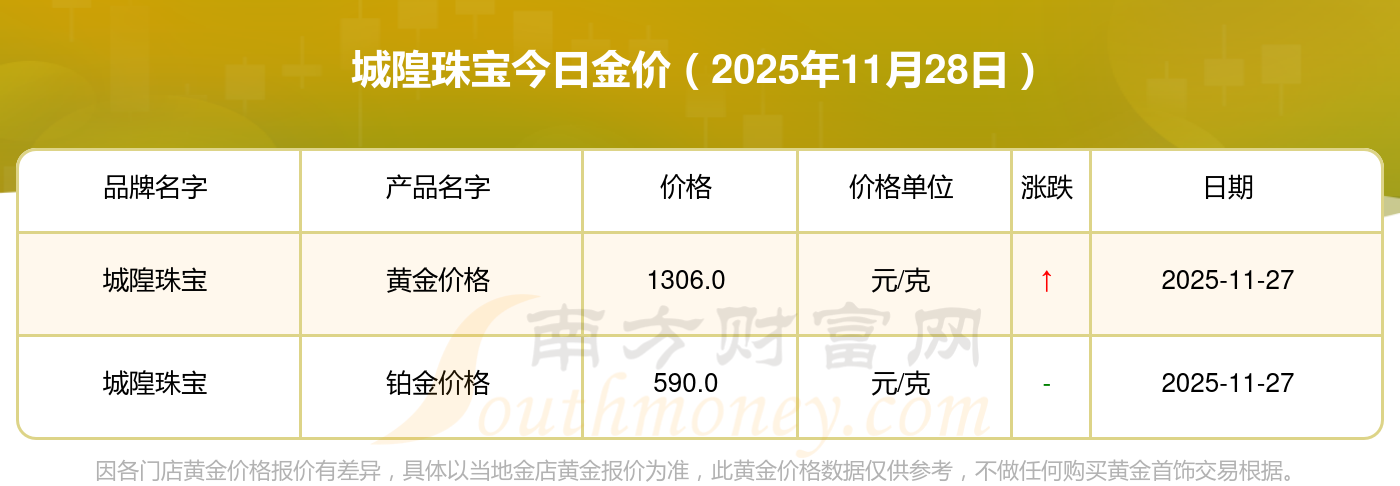 城隍珠寶今日金價(jià)多少錢一克