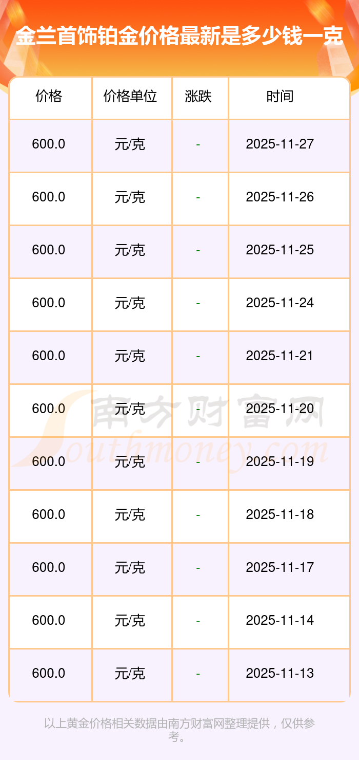 今日鉑金每克價(jià)格是多少?金蘭首飾鉑金價(jià)格最新是多少?今日每克鉑金的定價(jià)為多少?