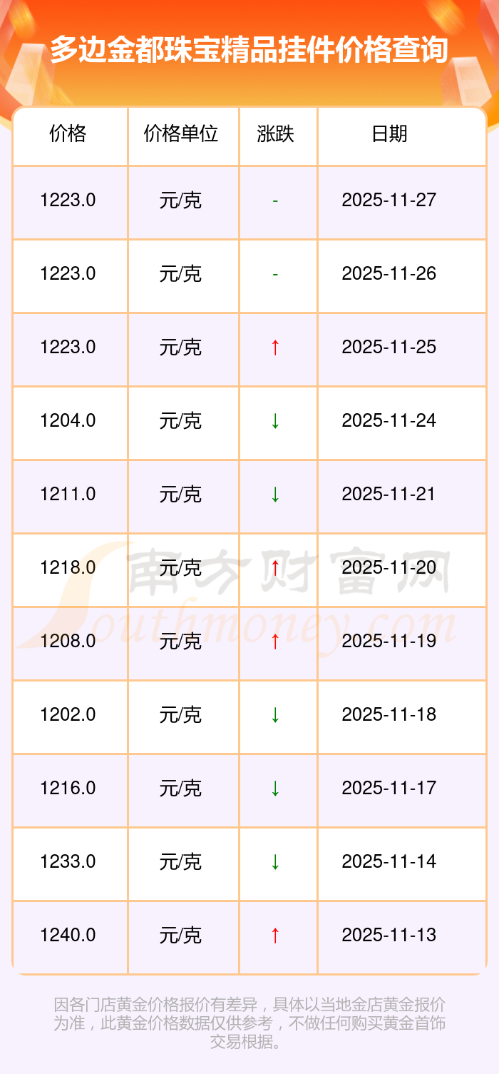 今日多邊金都珠寶精品掛件價(jià)格:1223.0元/克。