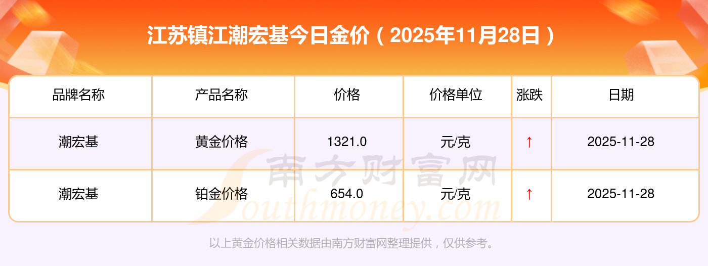 2025年11月28日江蘇鎮(zhèn)江潮宏基黃金按克計(jì)價(jià),現(xiàn)在多少錢一克?黃金價(jià)格1321.0元/克,鉑金價(jià)格600.0元/克,銀條價(jià)格12.6元/克,黃金價(jià)格1321.0元/克,鉑金價(jià)格600.0元/克,金條價(jià)格(內(nèi)地)1207.0元/克,金飾價(jià)格(內(nèi)地)1321.0元/克,黃金飾品(香港)46370.0,鉑金飾品(香港)13970.0,金條金價(jià)(香港)41860.0,投資金條1296.0元/克。