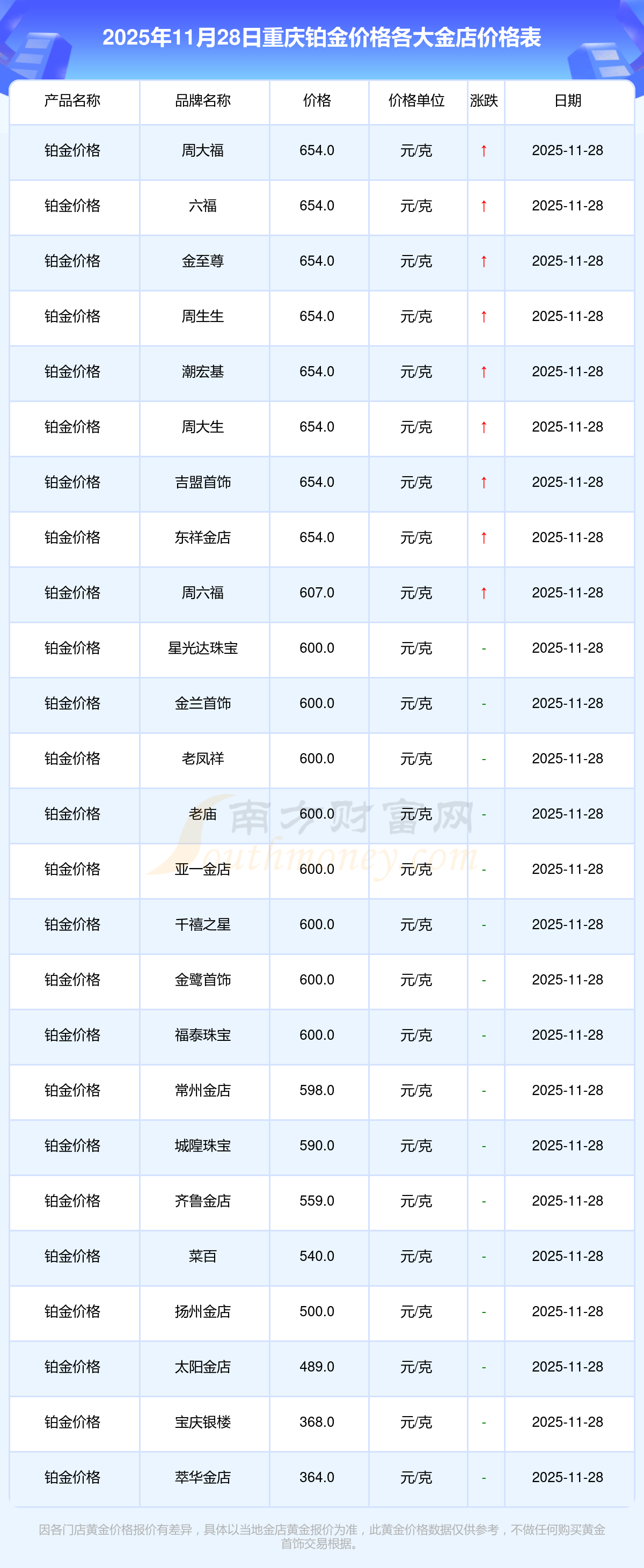 一、重慶各金店鉑金價(jià)格表來(lái)了