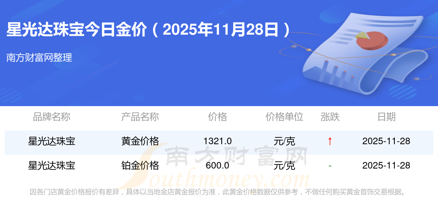 2025年11月28日星光達珠寶金條多少錢1克 現(xiàn)在南京星光達珠寶黃金價格查詢