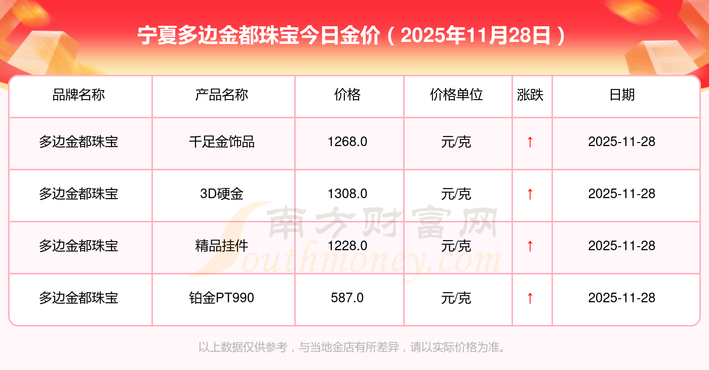 寧夏多邊金都珠寶今日金價多少錢一克