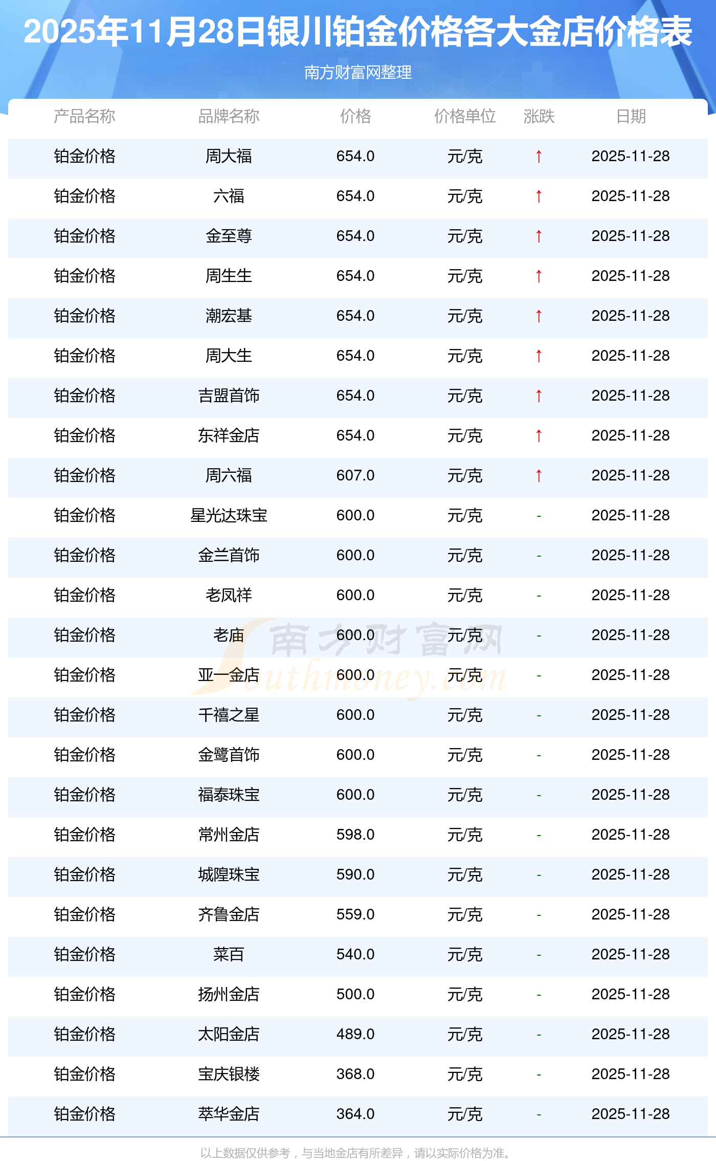一、 銀川各金店鉑金價格多少錢1克?銀川各金店鉑金價格最新詳情
