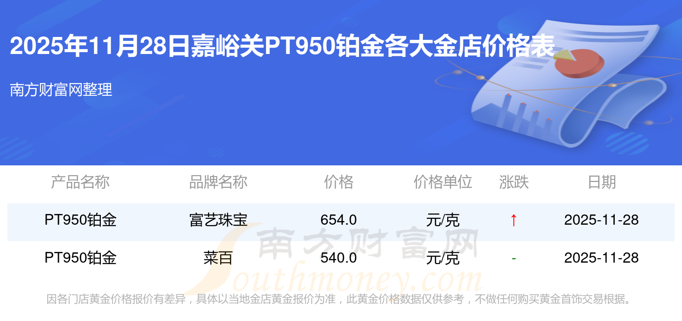 2025年11月28日嘉峪關(guān)星光達(dá)珠寶、星光達(dá)珠寶、寶泉錢(qián)幣、金蘭首飾、金蘭首飾、謝瑞麟、謝瑞麟、謝瑞麟、謝瑞麟、謝瑞麟、金銀街等各大金店品牌PT950鉑金最新價(jià)格行情來(lái)了,如下:星光達(dá)珠寶黃金價(jià)格1321.0元/克,星光達(dá)珠寶鉑金價(jià)格600.0元/克,寶泉錢(qián)幣銀條價(jià)格12.6元/克,金蘭首飾黃金價(jià)格1321.0元/克,金蘭首飾鉑金價(jià)格600.0元/克,謝瑞麟金條價(jià)格(內(nèi)地)1207.0元/克,謝瑞麟金飾價(jià)格(內(nèi)地)1321.0元/克,謝瑞麟黃金飾品(香港)46370.0,謝瑞麟鉑金飾品(香港)13970.0,謝瑞麟金條金價(jià)(香港)41860.0,金銀街投資金條1296.0元/克。