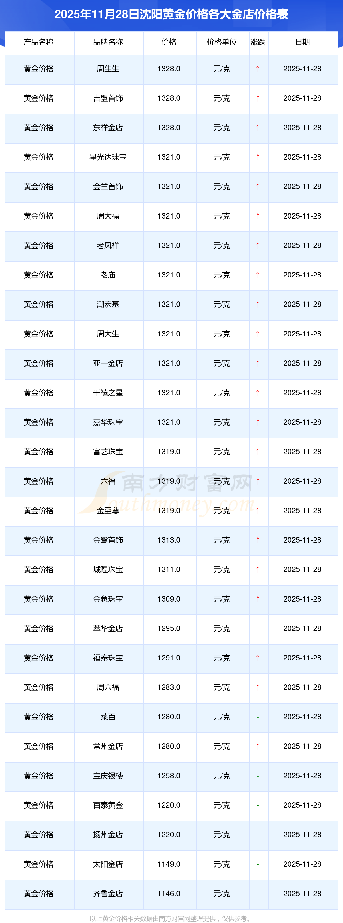一、沈陽(yáng)各金店黃金價(jià)格表來(lái)了