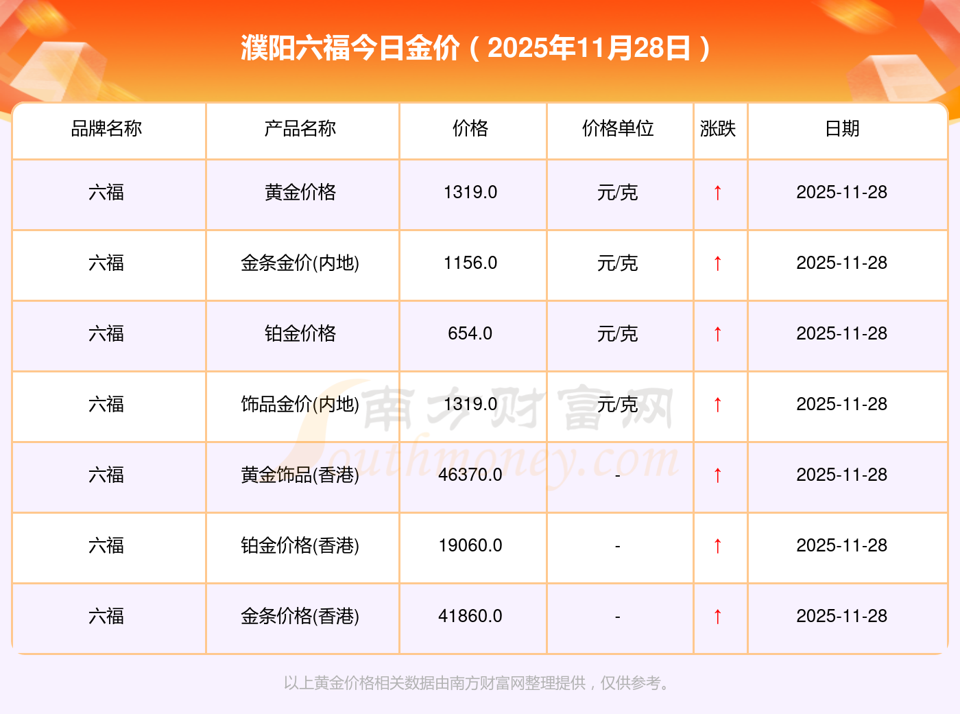 今天黃金價(jià)位怎樣?當(dāng)下一克黃金的價(jià)格為多少?濮陽(yáng)六福金價(jià)今日價(jià)格: