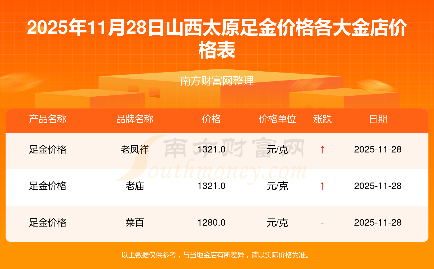 一、足金價(jià)格今日價(jià)格查詢(xún)(2025年11月28日山西太原各品牌金店實(shí)時(shí)足金價(jià)格表)