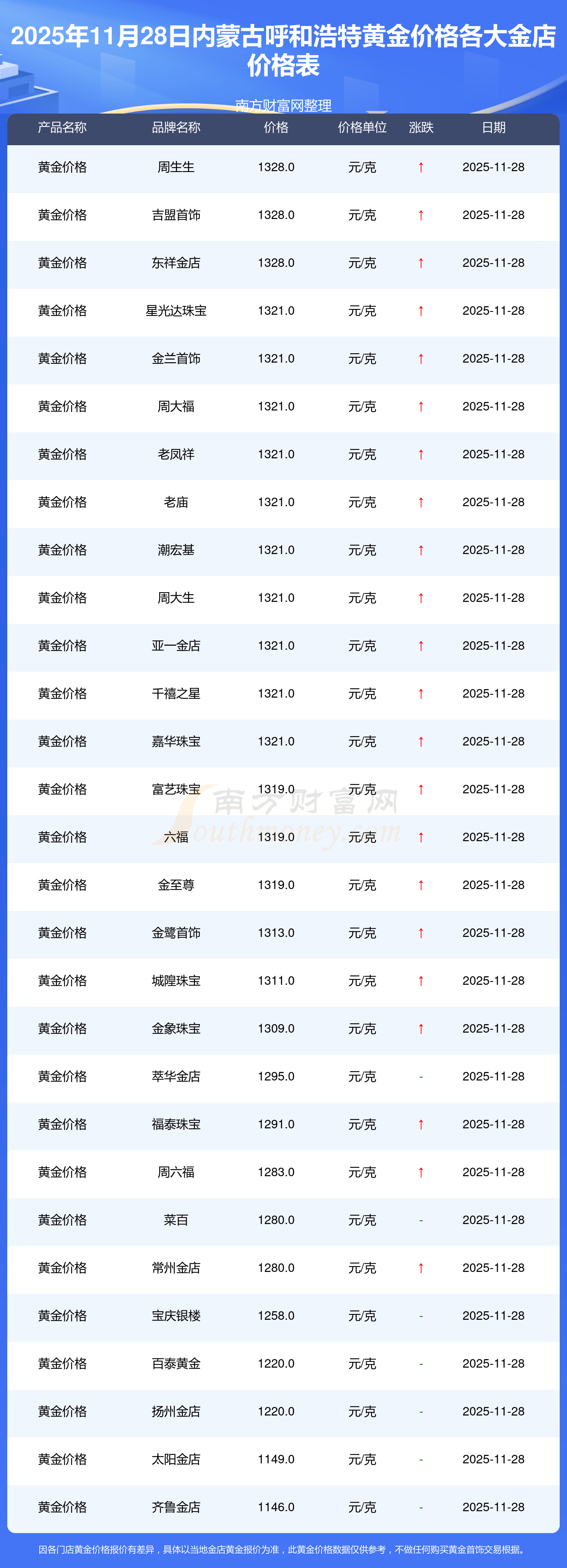 一、內(nèi)蒙古呼和浩特各金店黃金價格表最新公布 內(nèi)蒙古呼和浩特各金店黃金價格的價格行情如何?