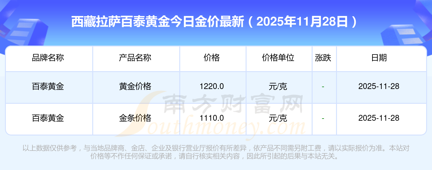 西藏拉薩百泰黃金每克黃金的價格是多少?