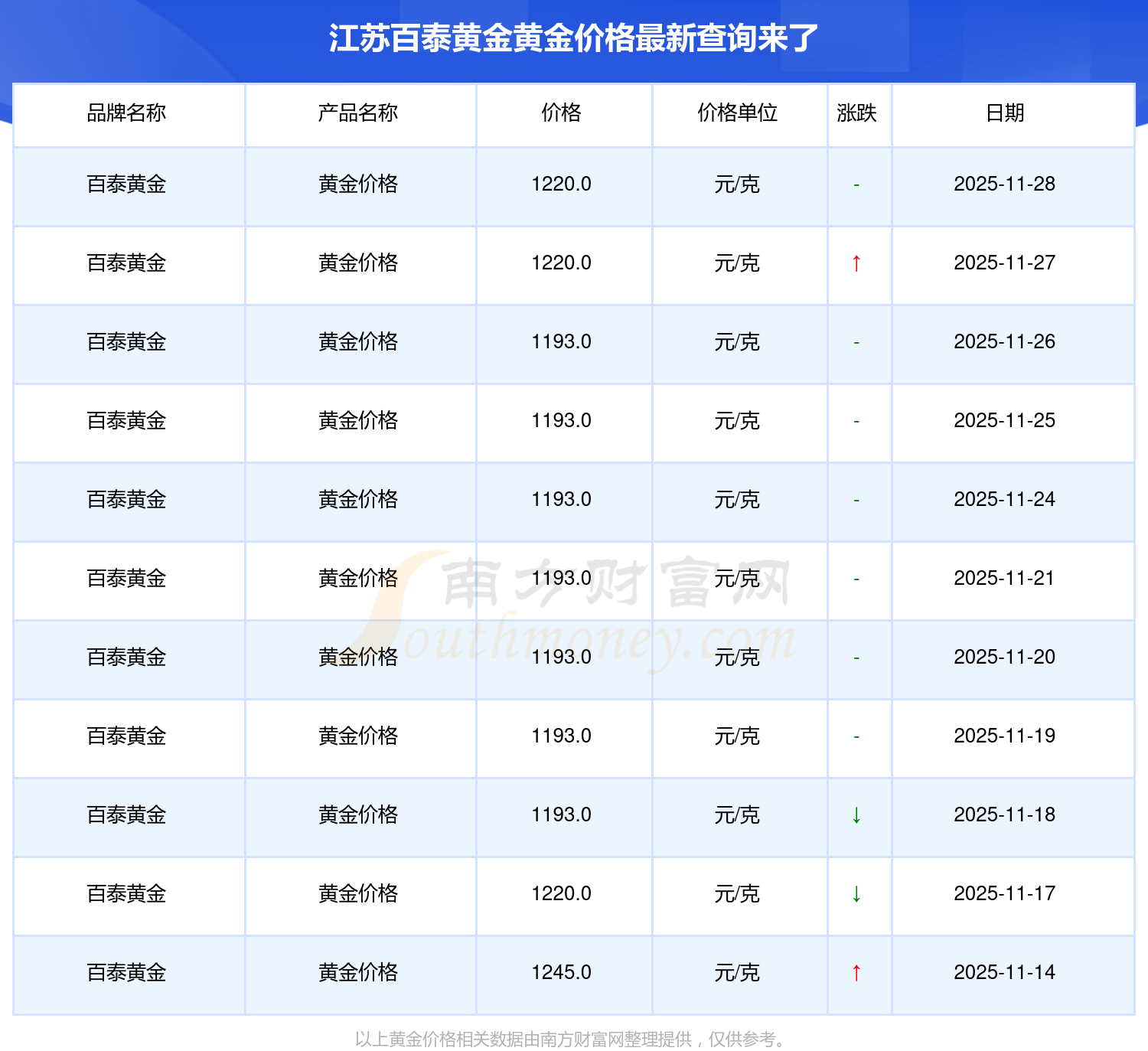 今日江蘇百泰黃金黃金價(jià)格最新為:1220.0元/克。