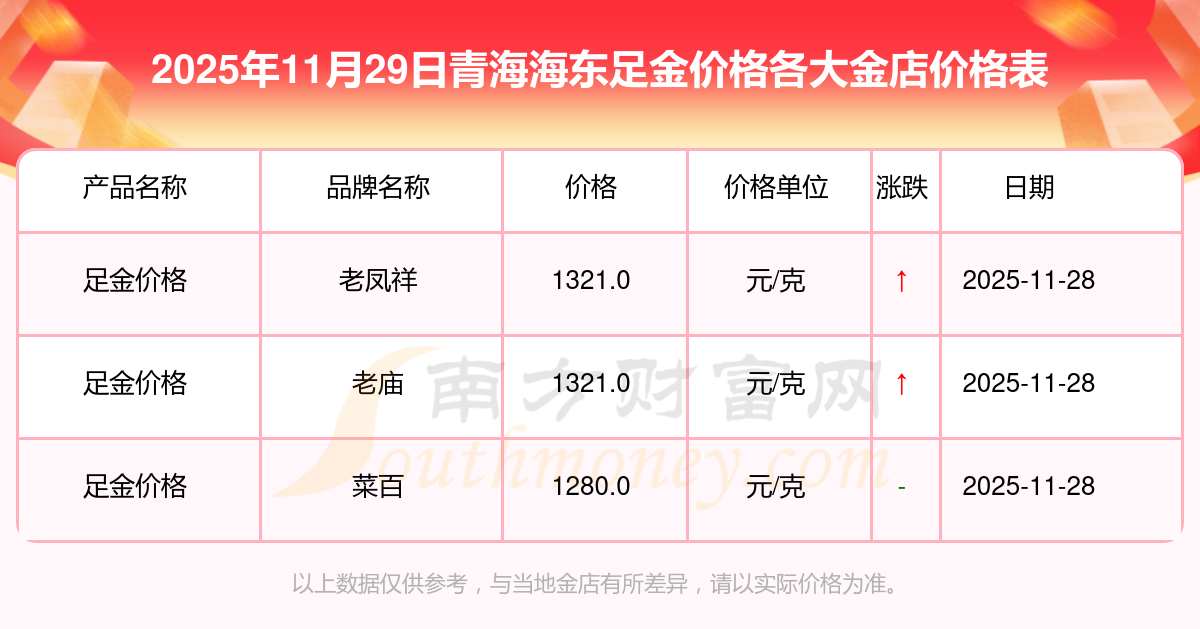 今日青海海東各金店足金價格今天多少一克?2025年11月29日足金價格最新查詢表