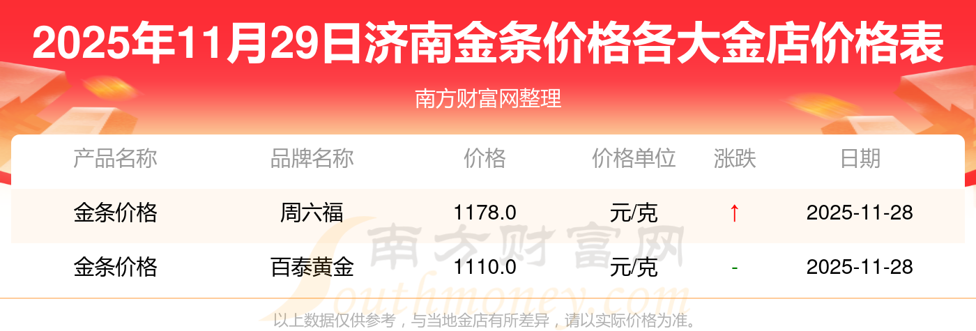2025年11月29日濟(jì)南各金店金條價(jià)格表來(lái)了