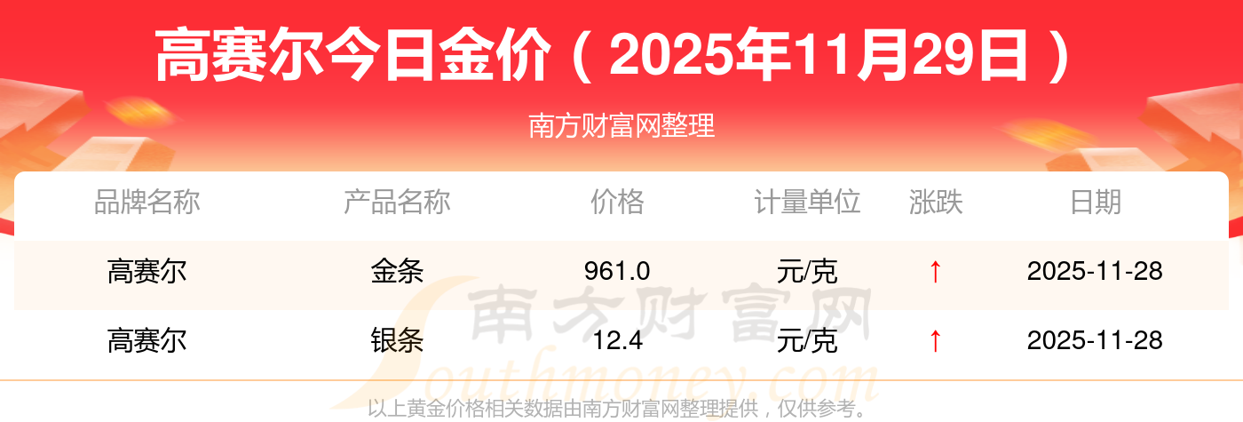 高賽爾今日金價多少錢一克