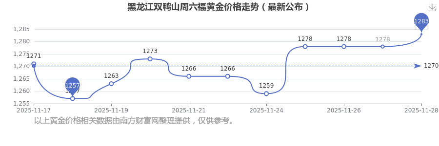 今日(2025年11月29日),1283.0元/克是黑龍江雙鴨山周六福黃金價(jià)格的價(jià)格標(biāo)準(zhǔn)。