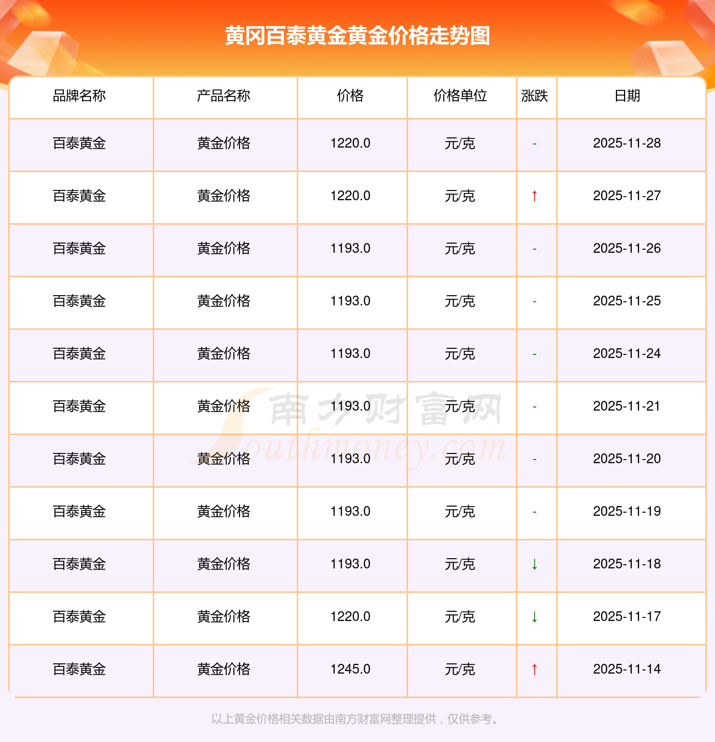 黃岡百泰黃金黃金價(jià)格現(xiàn)在每克多少錢(qián),今日黃金一克的標(biāo)價(jià)是多少?今日黃岡百泰黃金黃金價(jià)格查詢(xún),今日黃岡百泰黃金黃金價(jià)格最新為:1220.0元/克。
