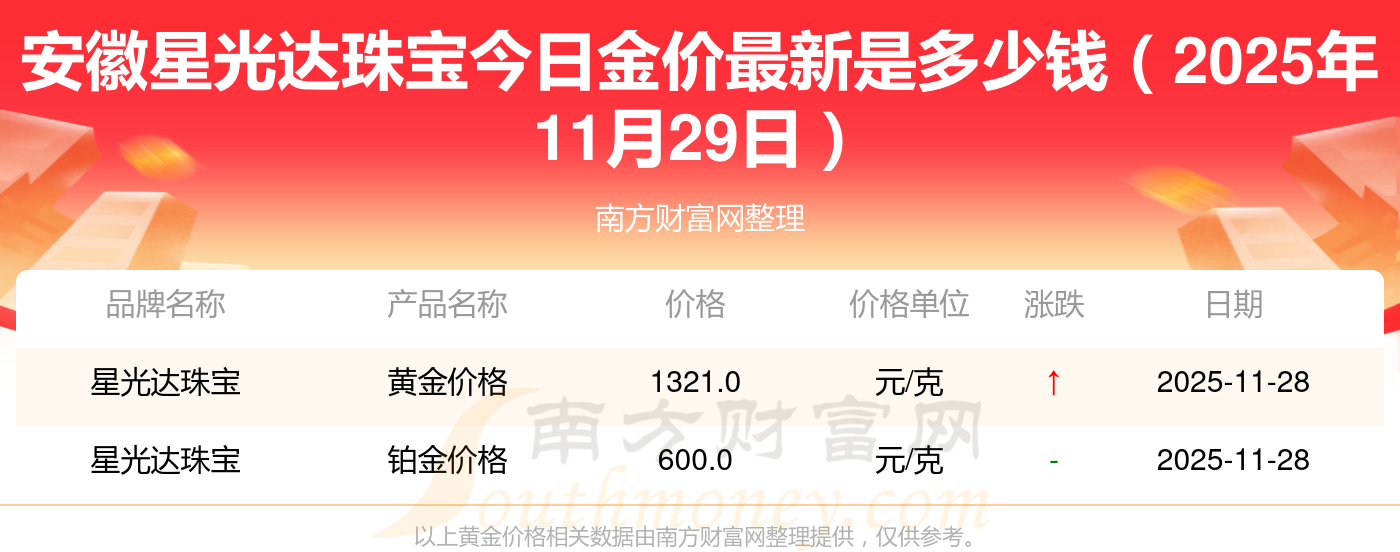 安徽星光達珠寶當下黃金一克的價錢是多少?