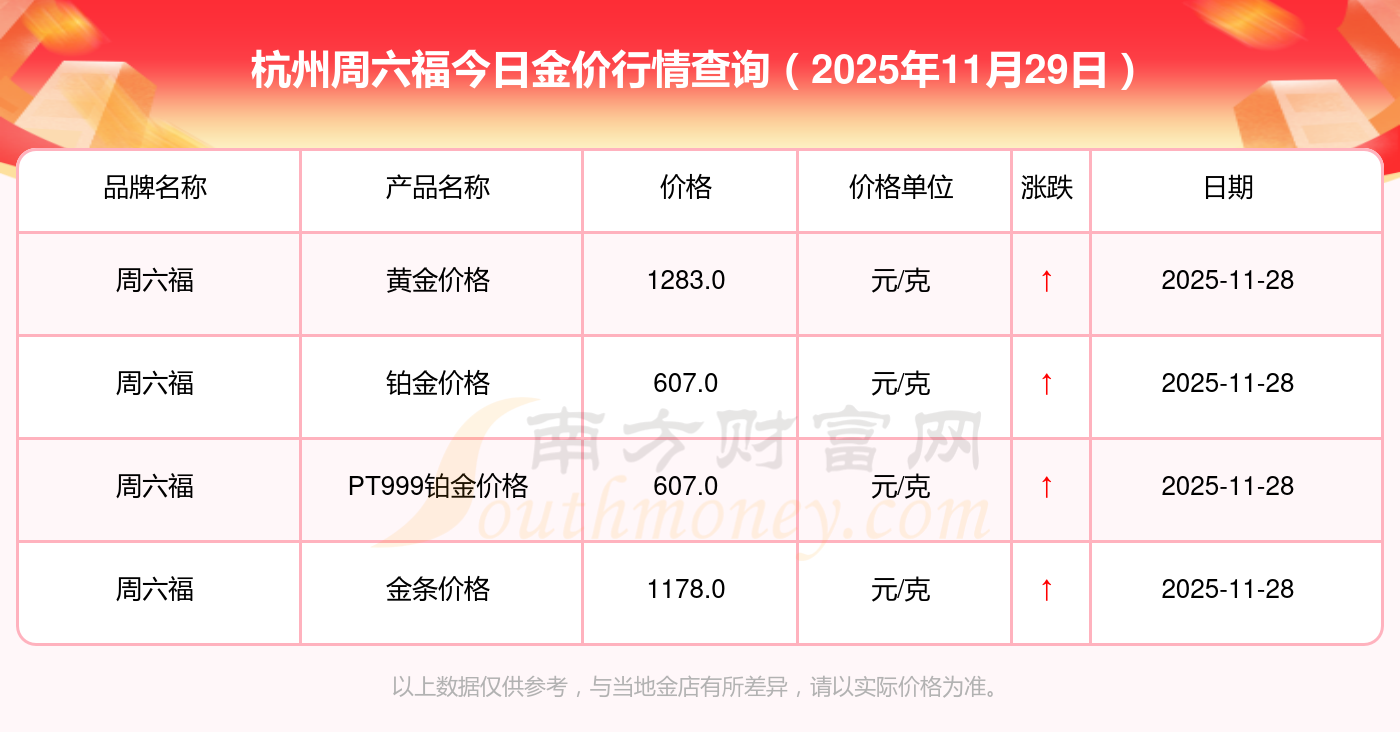 杭州周六福黃金價格表來了,現(xiàn)在杭州周六福黃金價格是多少錢1克?