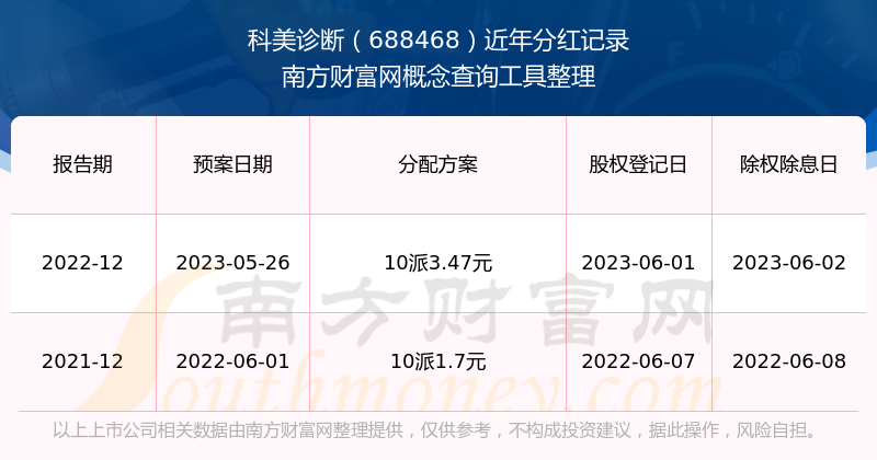 科美診斷最新一次公布的分紅方案:10派3.47元。